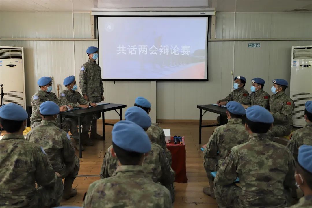 “我認(rèn)為,在學(xué)習(xí)‘兩會(huì)’精神過程中,重點(diǎn)是要把習(xí)主席重要講話精神落實(shí)到練兵備戰(zhàn)實(shí)踐中去,轉(zhuǎn)化為執(zhí)行維和任務(wù)的強(qiáng)大動(dòng)力……”維和分隊(duì)突出官兵主體,搭設(shè)分享平臺(tái),組織“藍(lán)盔學(xué)習(xí)分享會(huì)”“共話‘兩會(huì)’辯論賽”等活動(dòng)。他們多措并舉,著力做好“下篇文章”,將“兩會(huì)”精神的“觸角”延伸到任務(wù)點(diǎn)位。藍(lán)線雷場、施工一線、班排宿舍,隨處可見官兵們學(xué)習(xí)交流的身影,大家積極參與到活動(dòng)中來,在學(xué)習(xí)中提高思想站位,強(qiáng)化能力素質(zhì)。