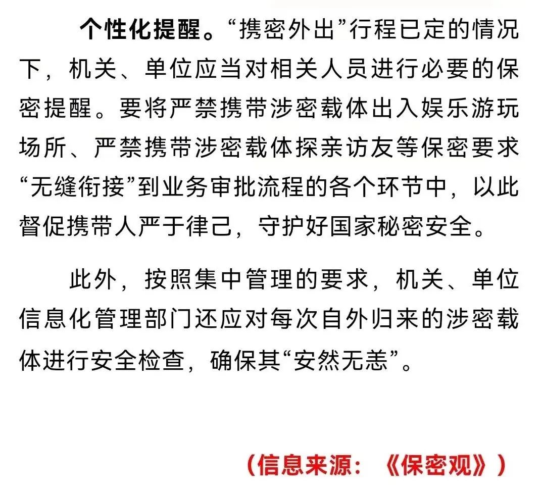 2、攜帶絕密級(jí)涉密載體外出不僅要