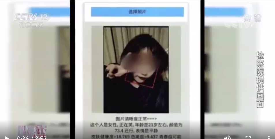 圖中被告人正在回答公訴人提出的的問(wèn)題:“這款軟件真的是用于顏值檢測(cè)的嗎?”