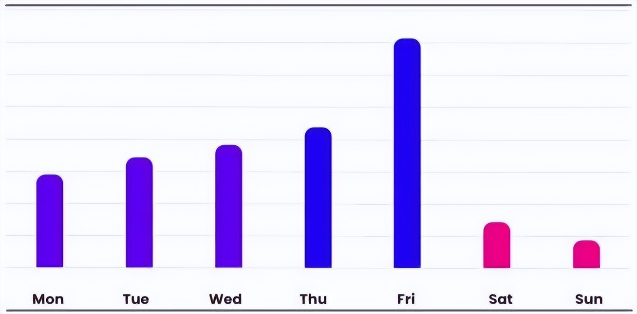 Vade的分析報(bào)告中指出,隨著一周的進(jìn)展,冒充微軟的電子郵件推送數(shù)量逐漸增加,并在周五達(dá)到頂峰,而周末數(shù)量卻驟減。
