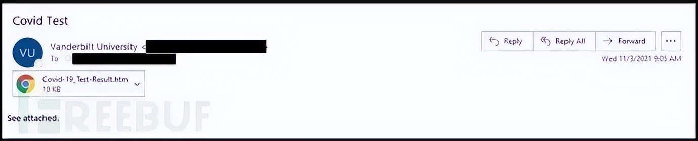 疫情期間,釣魚者利用人們的焦慮情緒,偽裝成有關(guān)最新奧密克戎變體、COVID-19 測(cè)試結(jié)果等信息,誘導(dǎo)用戶點(diǎn)擊郵件中的HTM附件,并將他們引導(dǎo)至由釣魚者精心準(zhǔn)備的虛假學(xué)校網(wǎng)站登錄頁(yè)面。