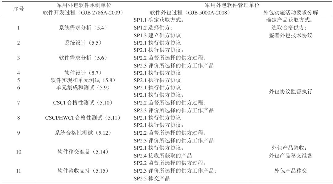 表4:軍用軟件外包開發(fā)過程實(shí)施要求分析