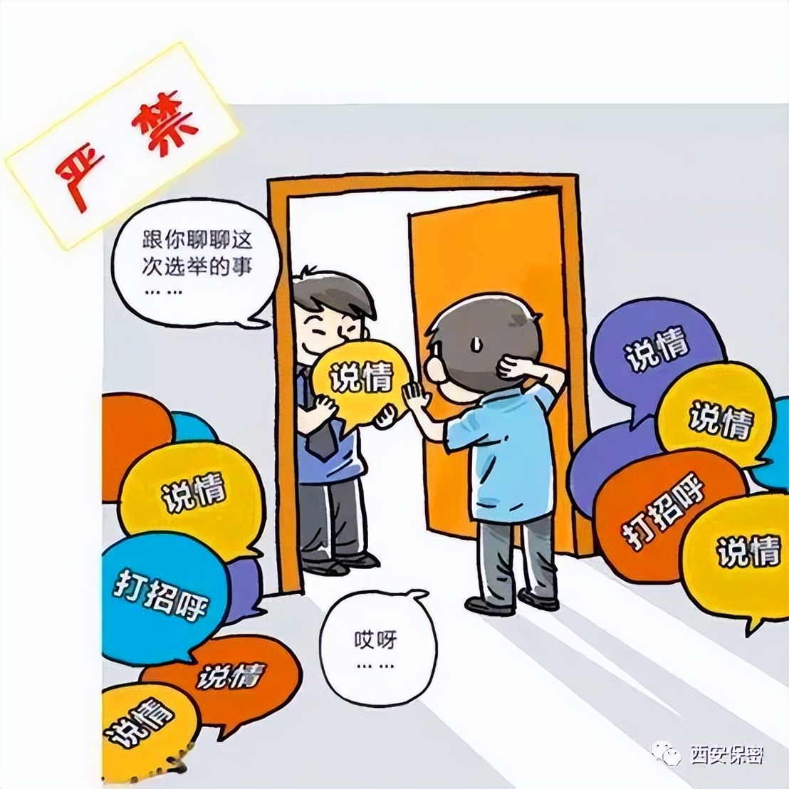 黨組織換屆選舉,是我們各級(jí)黨委的一項(xiàng)重要工作任務(wù),也是黨內(nèi)的重大政治事件,嚴(yán)守?fù)Q屆保密紀(jì)律,做好換屆保密工作,是我們每個(gè)黨員應(yīng)盡的義務(wù)。但仍有個(gè)別黨員干部理想信念缺失,保密意識(shí)淡薄,跑風(fēng)漏氣,嚴(yán)重干擾換屆工作的正常運(yùn)轉(zhuǎn),破壞了黨的凝聚力,損害了黨在群眾中的威信,造成了極其惡劣的影響。在此,小編也鄭重提醒各位黨員同志,在換屆期間“繃緊保密之弦,守好保密要件,不做泄密之事,履好黨員職責(zé)”。