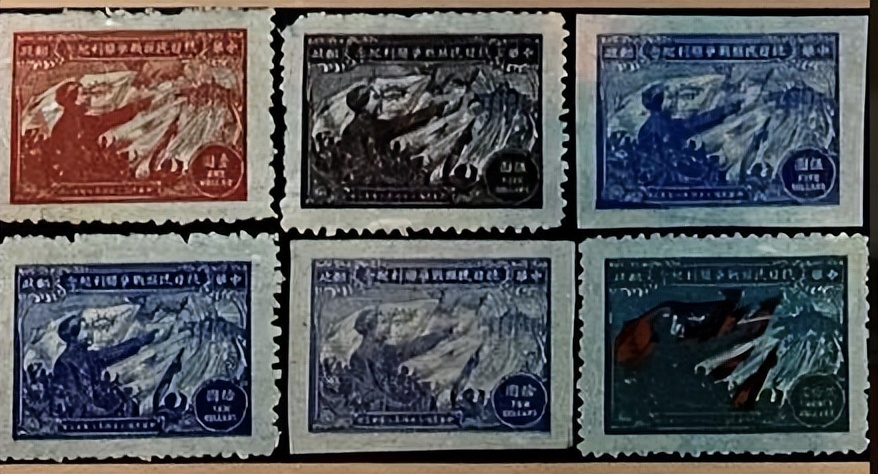 這張郵票的票面上,描繪的是毛主席揮手指引前進(jìn),萬千戰(zhàn)士在紅色信仰的號(hào)召下奮起響應(yīng)的情景。這是我國(guó)解放區(qū)發(fā)行的第一套紀(jì)念抗日戰(zhàn)爭(zhēng)