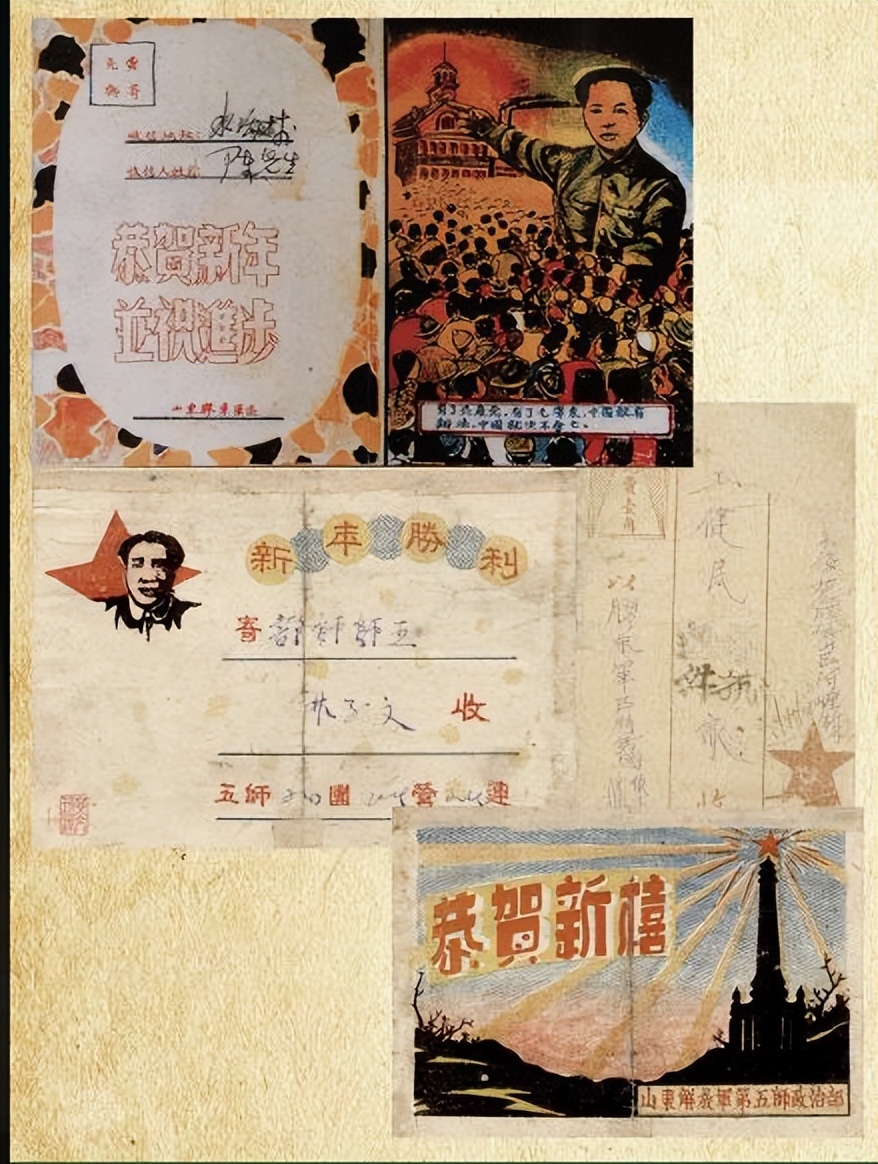 這些各式各樣的賀卡,都是山東戰(zhàn)時(shí)郵局發(fā)行的,然后由戰(zhàn)郵人將祝福送達(dá)一個(gè)個(gè)前線戰(zhàn)士。在它們身上,人們感受到了烽火年代被守護(hù)的溫暖和遠(yuǎn)方。