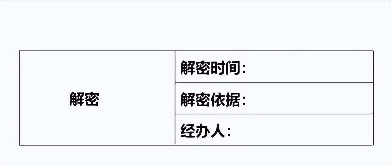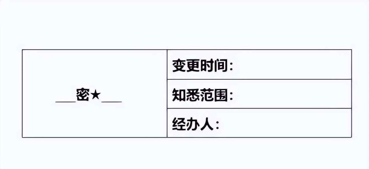 國家秘密的密級、保密期限、知悉范圍一經(jīng)決定變更,或者一經(jīng)決定提前解密和公布解密,就應當立即在原載體標志附近分別加蓋變更或解密標志圖章,標明變更或解除結(jié)果,表示原國家秘密標志廢除。國家秘密變更和解密圖章的基本格式如下圖: