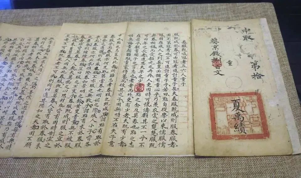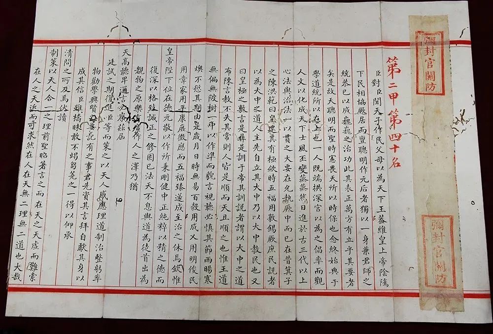 古代科舉考生試卷(局部),上有“彌封”字樣