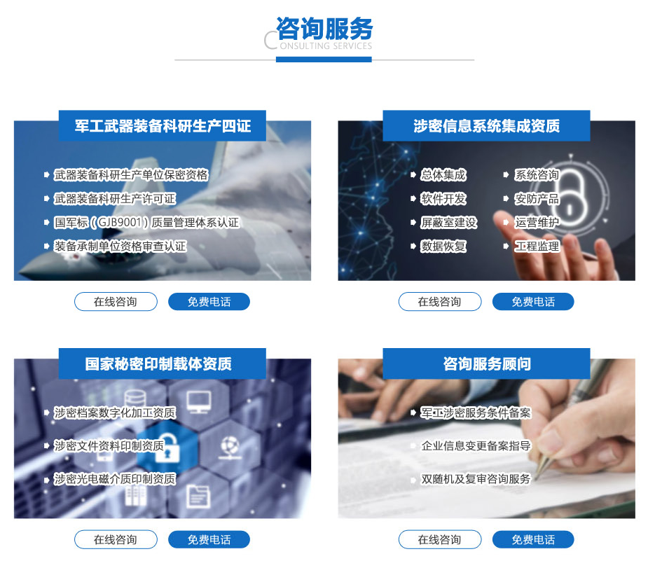 北京世紀(jì)君達(dá)管理咨詢有限公司成立于2011年,公司涉及軍工三證等軍密、國(guó)密資質(zhì)咨詢指導(dǎo),定制化保密培訓(xùn)、各類安保產(chǎn)品銷售等。是一家為企業(yè)提供保密工作咨詢性服務(wù)的服務(wù)平臺(tái)。公司專注于武器裝備科研生產(chǎn)保密資格一級(jí)、二級(jí)、三級(jí)和國(guó)軍標(biāo)、武器裝備科研生產(chǎn)許可證、武器裝備承制名錄、軍工涉密業(yè)務(wù)咨詢服務(wù)單位條件備案、國(guó)家秘密載體印制甲乙級(jí)、涉密信息系統(tǒng)集成甲乙級(jí)等軍密國(guó)密資質(zhì)的申請(qǐng)、復(fù)審等業(yè)務(wù)的咨詢指導(dǎo)。立足北京,面向全國(guó)企、事業(yè)單位提供保密教育培訓(xùn)、企業(yè)保密管理咨詢和軍民融合科技咨詢服務(wù)、涉密場(chǎng)所(保密室)建設(shè)、安全保密產(chǎn)品和涉密運(yùn)行維護(hù)等服務(wù)。與多家法定行政許可鑒定評(píng)審/型式試驗(yàn)機(jī)構(gòu)形成了合作互信關(guān)系,以便于能夠第一時(shí)間掌握最新政策動(dòng)向,知悉每一位客戶所處行業(yè)動(dòng)態(tài),確保為廣大客戶提供最專業(yè)、最權(quán)威的企業(yè)顧問(wèn)服務(wù)。