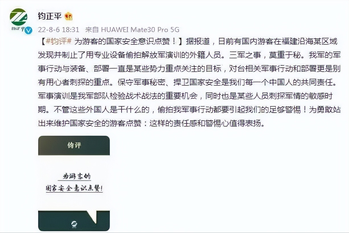 保守軍事秘密、捍衛(wèi)國家安全是我們每一個中國人的共同責任。軍事演訓是我軍部隊檢驗戰(zhàn)術戰(zhàn)法的重要機會,同時也是某些人員刺探軍情的敏感時期。不管這些外國人是干什么的,偷拍我軍事行動都要引起我們的足夠警惕!