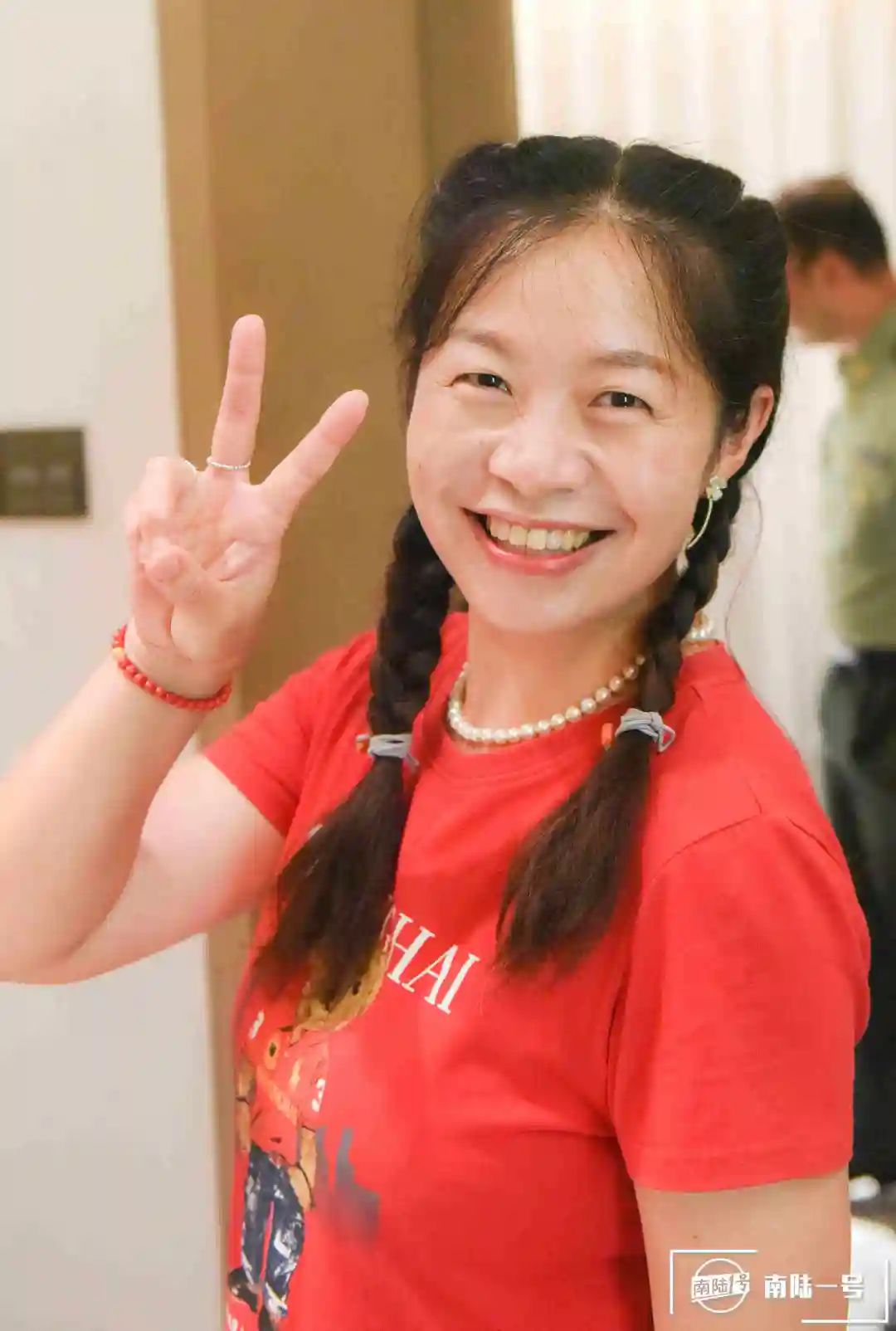 ▲易老師特意扎上兩個小辮子