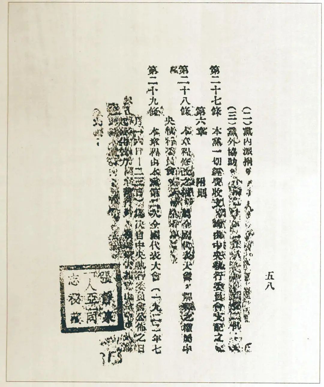 經(jīng)過會議代表的充分討論,最后通過的黨章共有6章29條,對黨的組織原則、組織機構(gòu)、紀(jì)律和制度等,分別作了具體規(guī)定,其中就包含黨員必須嚴(yán)格執(zhí)行黨的保密紀(jì)律,一旦泄露黨的機密,必須開除的條款。