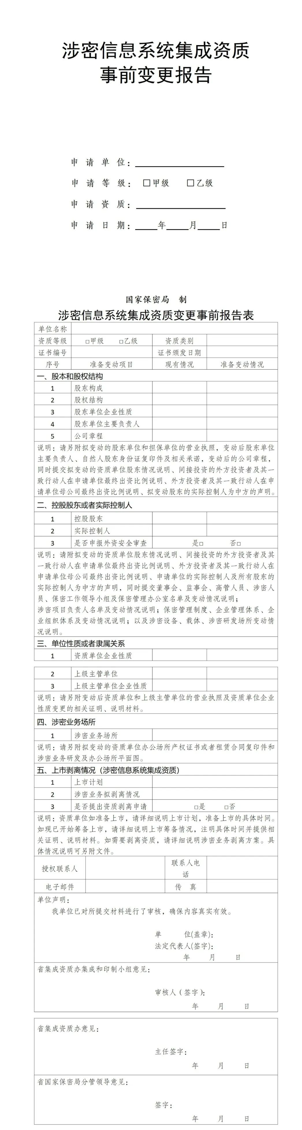1.涉密信息系統(tǒng)集成資質(zhì)變更事前報(bào)告表