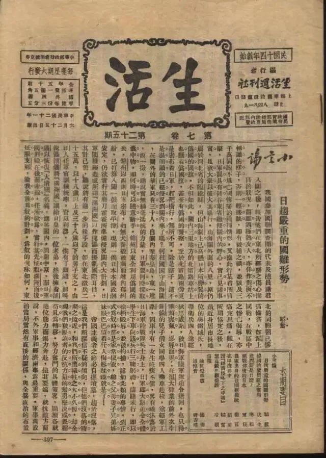 1922年,鄒韜奮在黃炎培等創(chuàng)辦的中華職業(yè)教育社任編輯股主任,開啟了自己的新聞?dòng)浾呗殬I(yè)生涯。4年后,他接任《生活》周刊主編,從此走上了一條以犀利之筆抨擊反動(dòng)政府的道路。