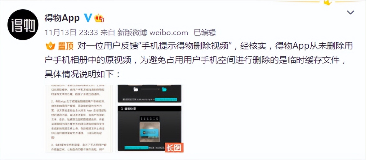 對(duì)此,得物App回應(yīng)表示,從未刪除用戶手機(jī)相冊(cè)中的原視頻,只是為避免占用用戶手機(jī)空間,刪除了其臨時(shí)緩存文件。