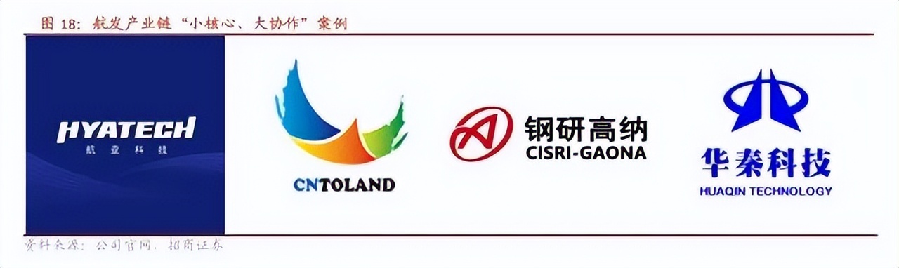(4)軍民融合推進,航發(fā)產(chǎn)業(yè)鏈逐步開放,民營企業(yè)成長進入快車道。國外航空發(fā)動機巨頭普遍采用的是“主承制商-供應(yīng)商”發(fā)展模式,國內(nèi)以中國航發(fā)商發(fā)為代表的主機廠近幾年也積 極對產(chǎn)業(yè)鏈進行轉(zhuǎn)型升級,中國航發(fā)商發(fā)采用了“產(chǎn)業(yè)鏈兩頭以及中段代表核心競爭力的部分在內(nèi),其余業(yè)務(wù)盡量外 包”的“元寶型”商業(yè)模式,軍用發(fā)動機主機廠形成了軍工企業(yè)與民口企業(yè)“主配牽手”的合作模式。近年來,受益于國家“兩機”重大專項的落地,以及軍民融合的深入推進,航空發(fā)動機產(chǎn)業(yè)鏈正在逐步放開,形成了 “小核心、大協(xié)作、專業(yè)化、開放式”的科研生產(chǎn)體系。在這種背景下,民營企業(yè)也正在逐步成為一支不可忽視的力 量。當(dāng)前民營企業(yè)主要從零部件切入航空發(fā)動機領(lǐng)域,且多為同國際巨頭合作,許多企業(yè)利用靈活的機制,引進國際 知名專家隊伍,定制國際先進的專業(yè)化設(shè)備,在高溫合金材料制備、精密鑄造、葉片機加等方面承擔(dān)了多項航空發(fā)動 機和燃氣輪機科研生產(chǎn)任務(wù)。