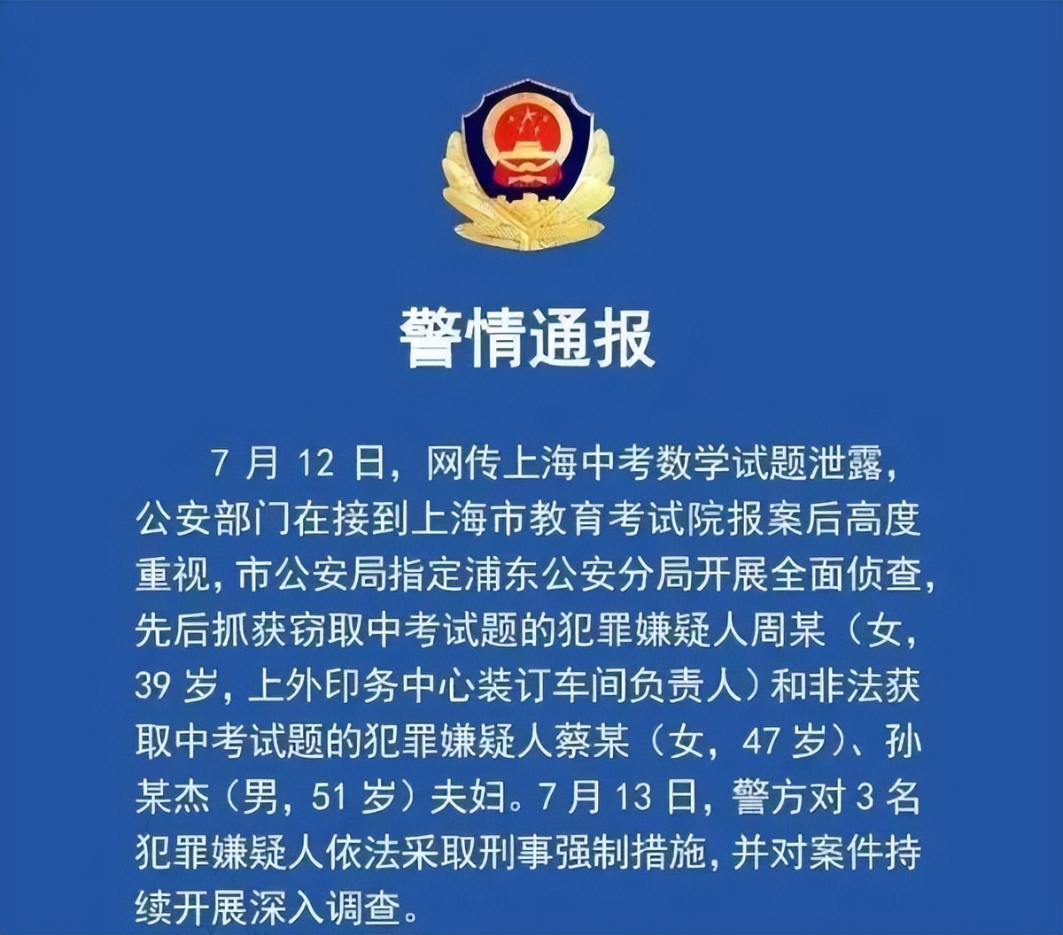 2022年,上外印務(wù)中心裝訂車間負(fù)責(zé)人周某,在印制上海市中考試卷期間,將試卷偷帶進(jìn)宿舍,然后用提前藏好的手機(jī)拍照,隨后向外傳送,導(dǎo)致當(dāng)年上海中考數(shù)學(xué)試題泄露。