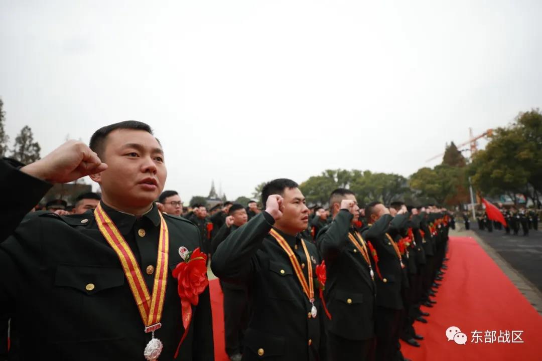 ▲謝帥(左一)退伍時(shí)重溫入伍誓詞。