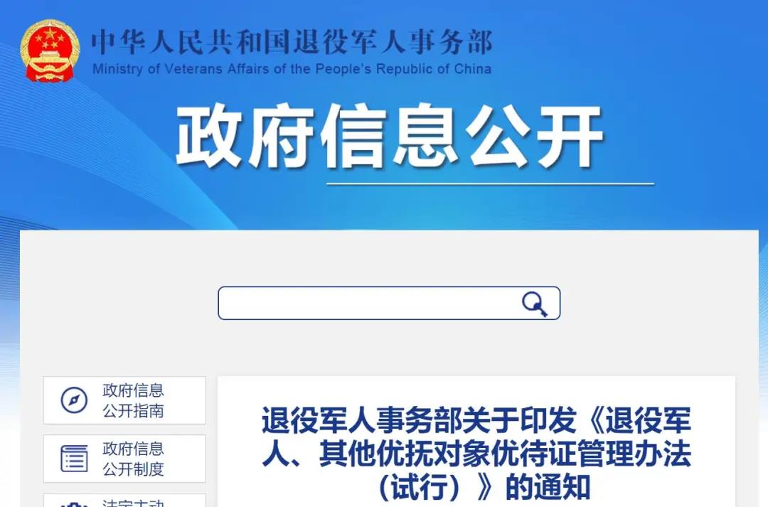 為落實(shí)黨中央國(guó)務(wù)院決策部署和相關(guān)法律法規(guī)要求,規(guī)范優(yōu)待證相關(guān)管理工作,退役軍人事務(wù)部在深入調(diào)查研究、反復(fù)研究論證、廣泛征求意見基礎(chǔ)上,制定出臺(tái)了《優(yōu)待證管理辦法》。