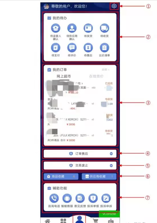 【訂單售后】:查看所有可進(jìn)行售后的網(wǎng)上超市和在線競(jìng)價(jià)訂單,并可通過“待確認(rèn)”、“售后中”、“已完成”、“已取消”等售后狀態(tài)進(jìn)行篩選。已申請(qǐng)售后的訂單可查看售后記錄。