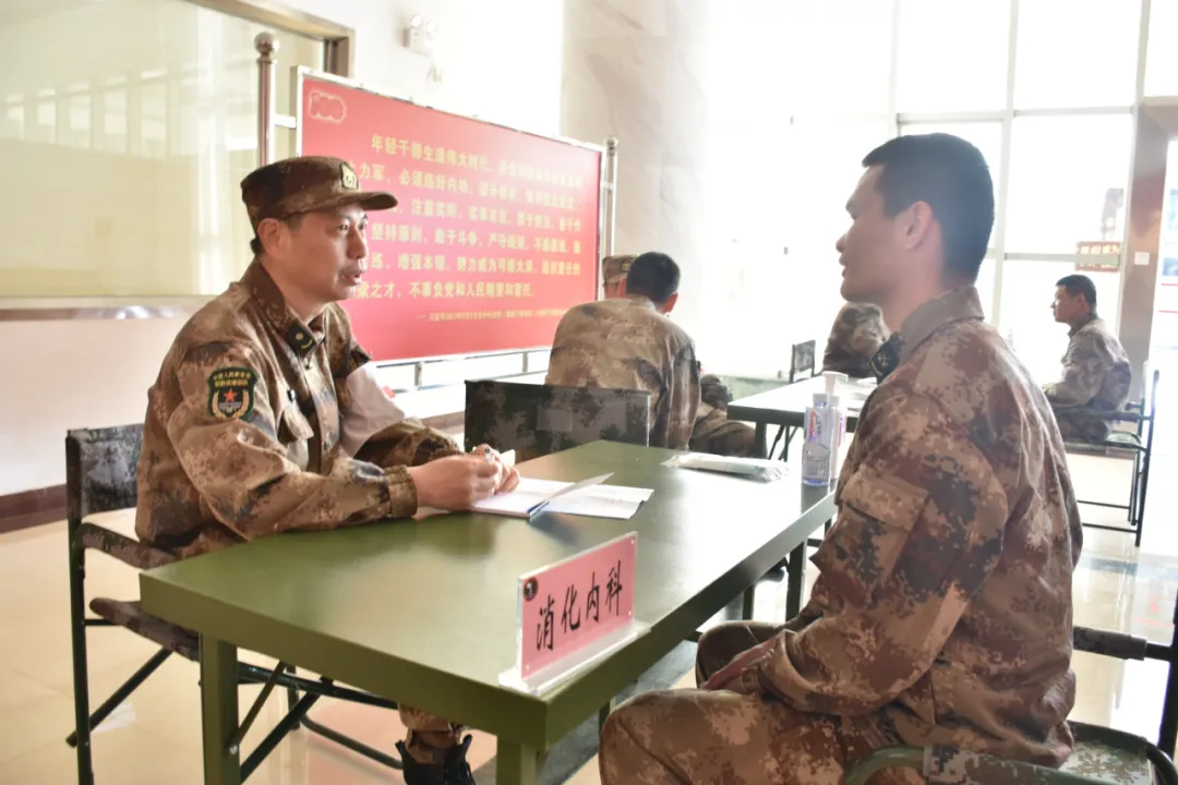 此次巡診團(tuán)隊(duì),有消化內(nèi)科、泌尿科、骨科、皮膚科、康復(fù)科等科室醫(yī)療專家?,F(xiàn)場(chǎng),前來(lái)咨詢健康知識(shí)、問(wèn)診、新政策的官兵、家屬絡(luò)繹不絕。醫(yī)務(wù)人員耐心細(xì)致地為官兵講解疾病的處置方法和預(yù)防措施,發(fā)放藥品并贈(zèng)送健康手冊(cè)。
