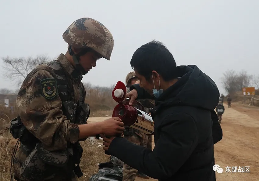 ▲行軍途中,參加過邊境作戰(zhàn)的退役老兵熱情給官兵送水。