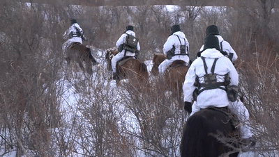 荊棘遍布的灌木叢讓軍馬幾乎難以前行,而已達(dá)70公分厚的積雪更增加了騎行難度。大家不斷調(diào)整,100米的巡邏路足足走了半個(gè)小時(shí)。