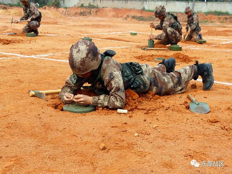 ▲戰(zhàn)士正在埋設(shè)防坦克地雷。