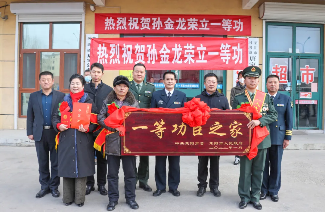 軍歌嘹亮擂戰(zhàn)鼓,鮮花簇擁贊功臣。1月24日,山東省煙臺市河洛鎮(zhèn)唐家灣村迎來一件喜事——第71集團軍某旅攜手當?shù)攸h政機關(guān)和國防動員系統(tǒng),將“濟南英雄連”連長孫金龍的一等功立功喜報送到家中,并為其家庭頒發(fā)“一等功臣之家”牌匾。