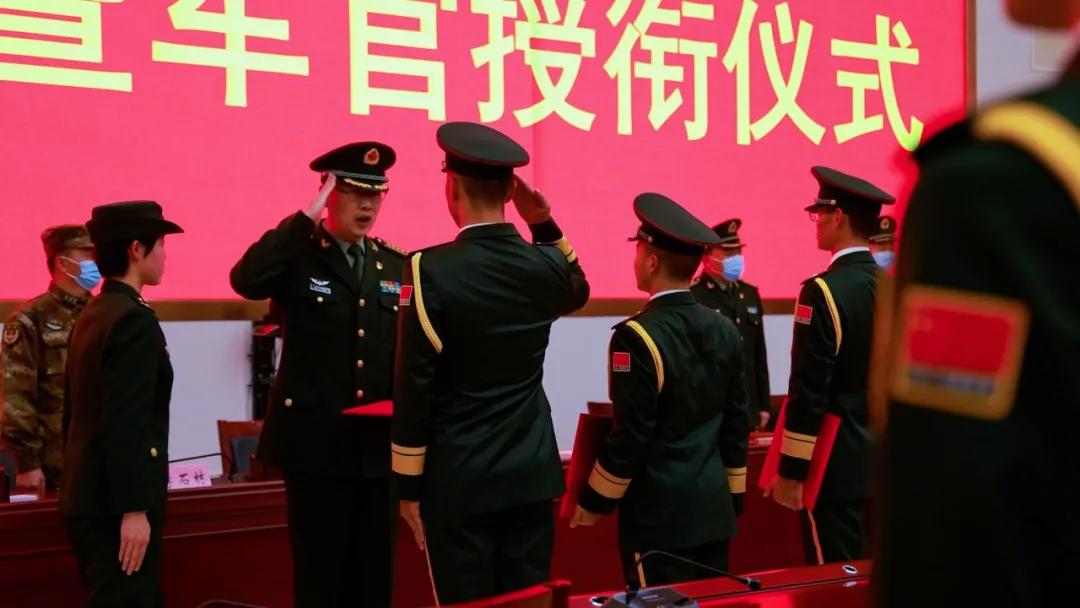 劉振宇:換下一道杠,戴上軍官銜,我感到肩上沉甸甸的責(zé)任與擔(dān)當(dāng)。我將以此次授銜為起點(diǎn),用百倍的努力和無限的忠誠,主動(dòng)扛起