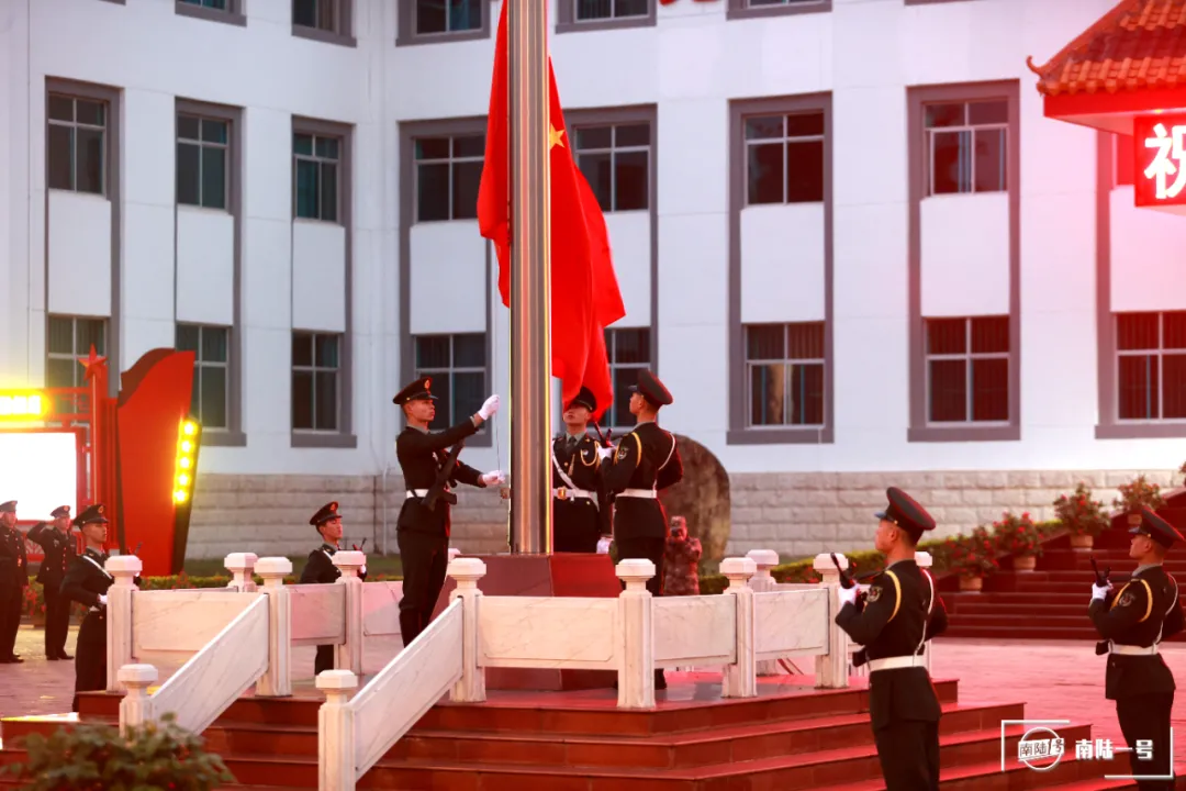 上午7時許,在雄壯的國歌聲中,該旅官兵軍容嚴整、整齊列隊,齊聲高唱國歌,舉起右手莊嚴敬禮,注視著鮮艷的五星紅旗冉冉升起。
